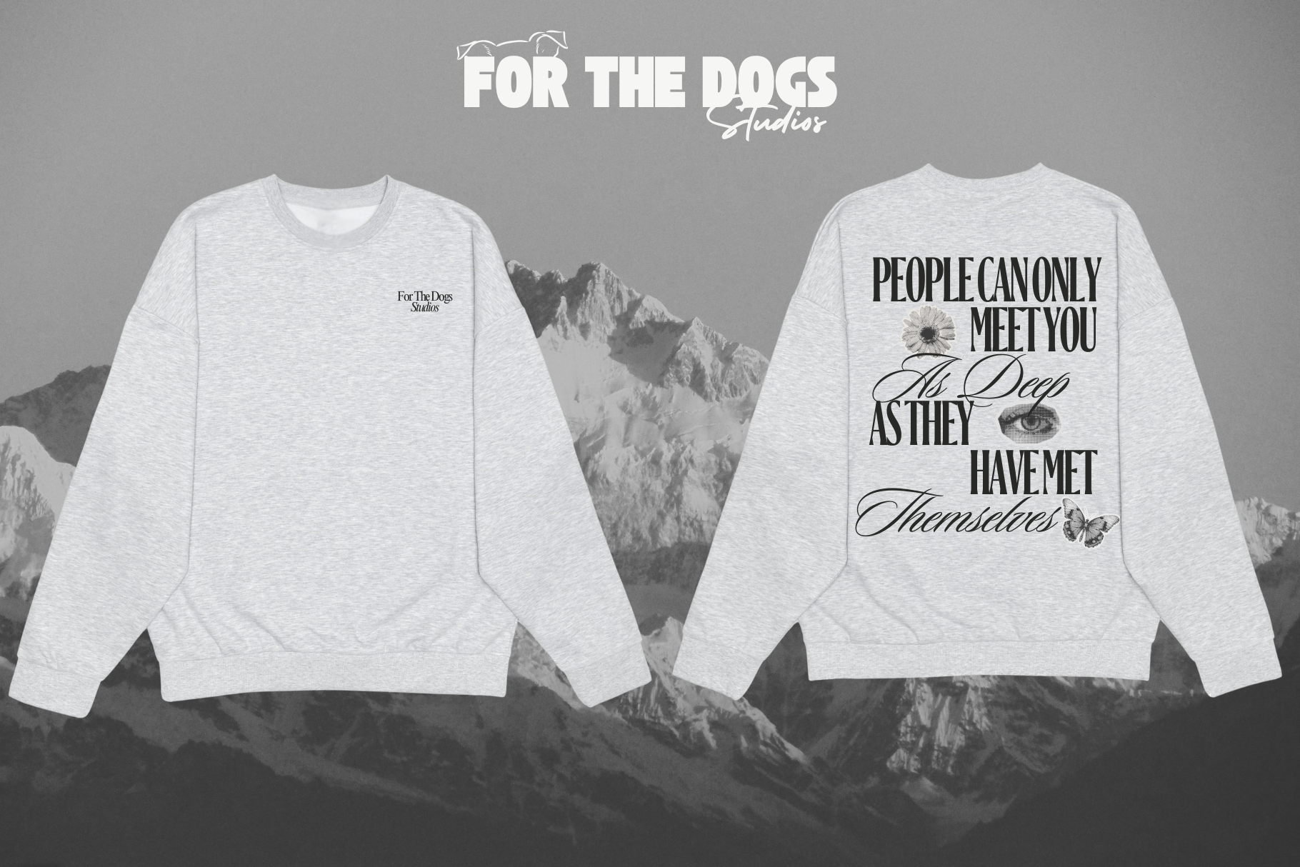 Our "As Deep" crewneck features a large graphic printed on the back.