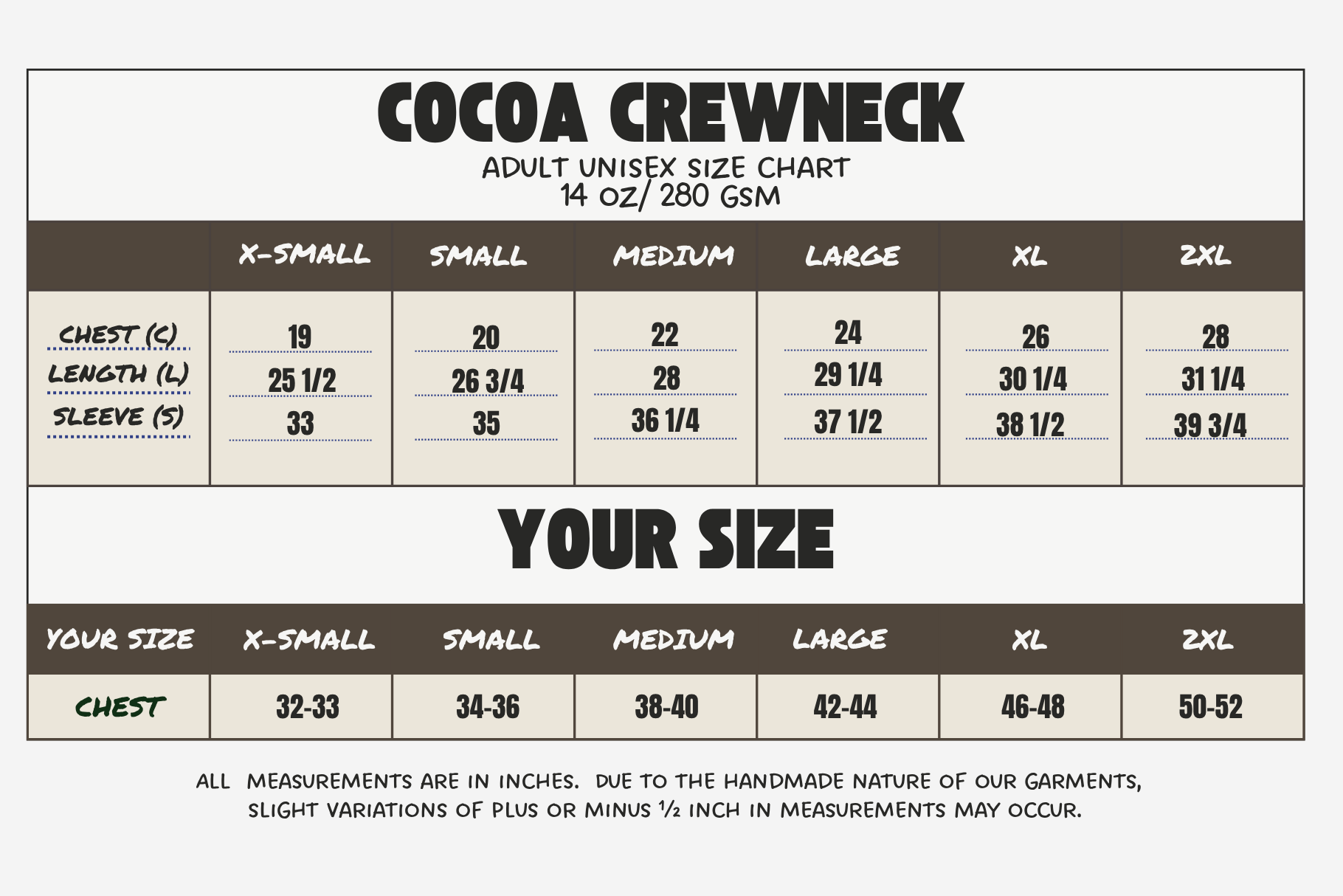 SIZING: For sizing, please reference the size chart in the listing photos. The crewneck is unisex with a standard fit. If you like an oversized fit, we recommend sizing up.