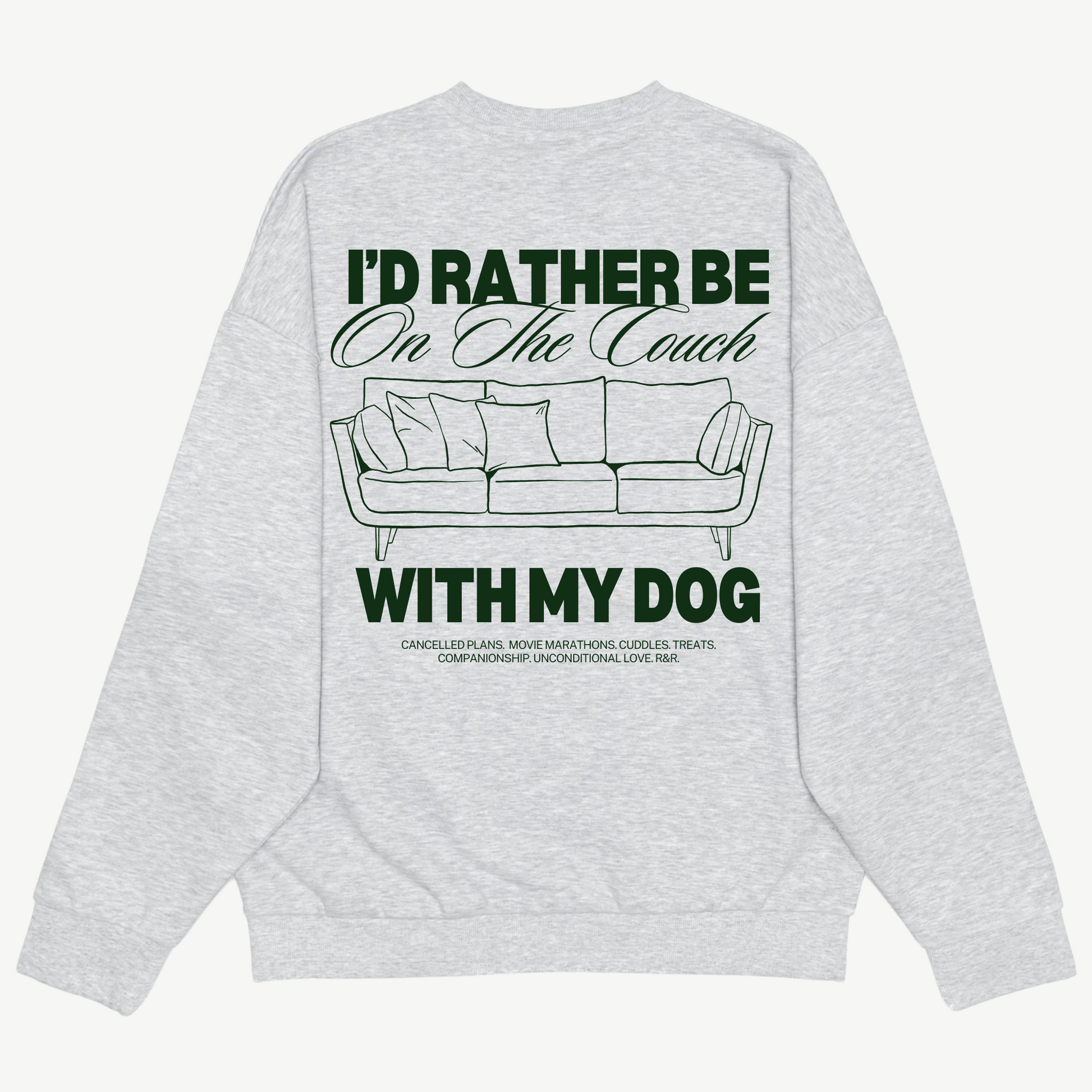Our "Rather Be" crewneck features a large graphic printed on the back.