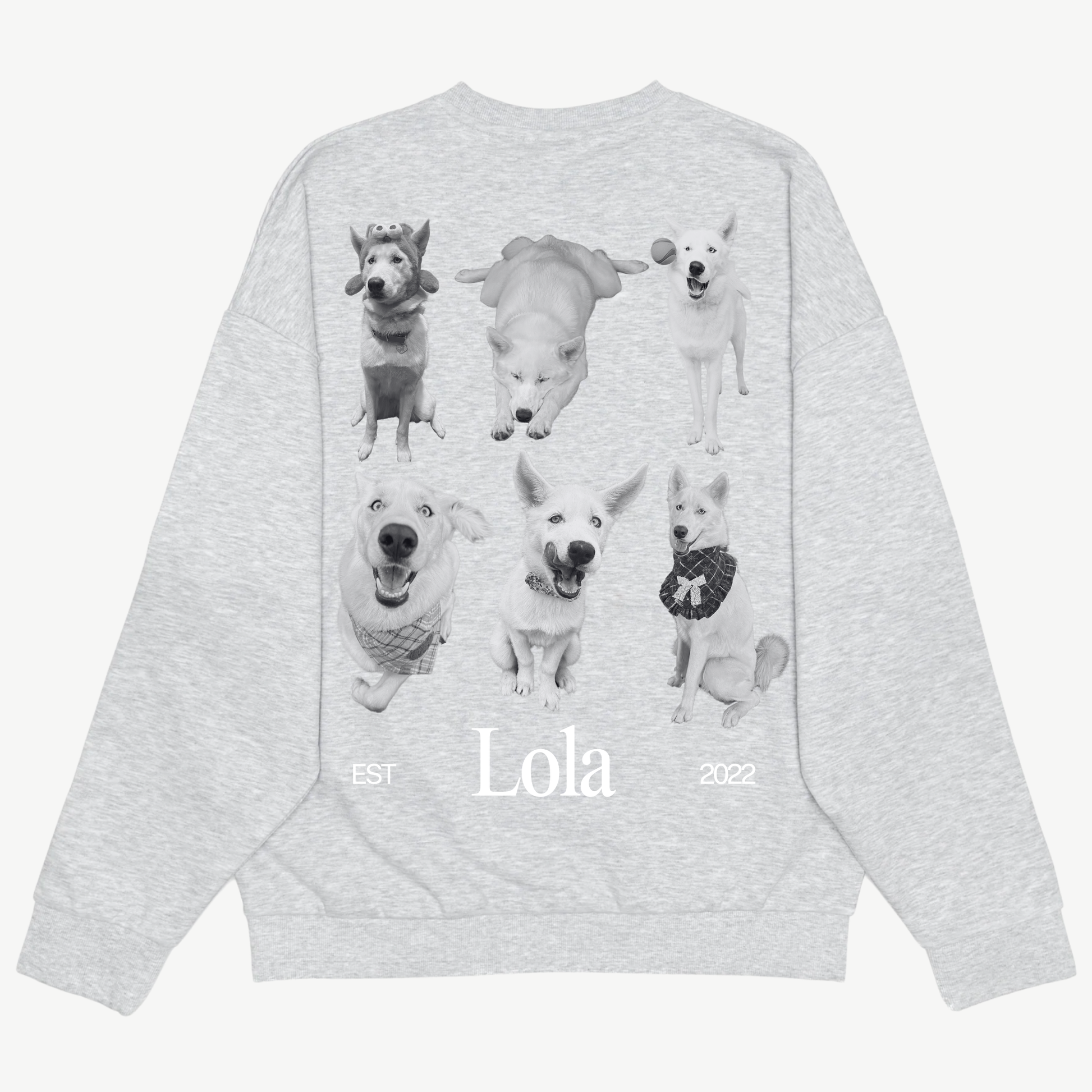Obsessed with your dog and have way too many cute photos? Our Custom Dog crewneck is for you! This custom graphic features six of your fav photos of your dog with their name and birth year printed on the back.